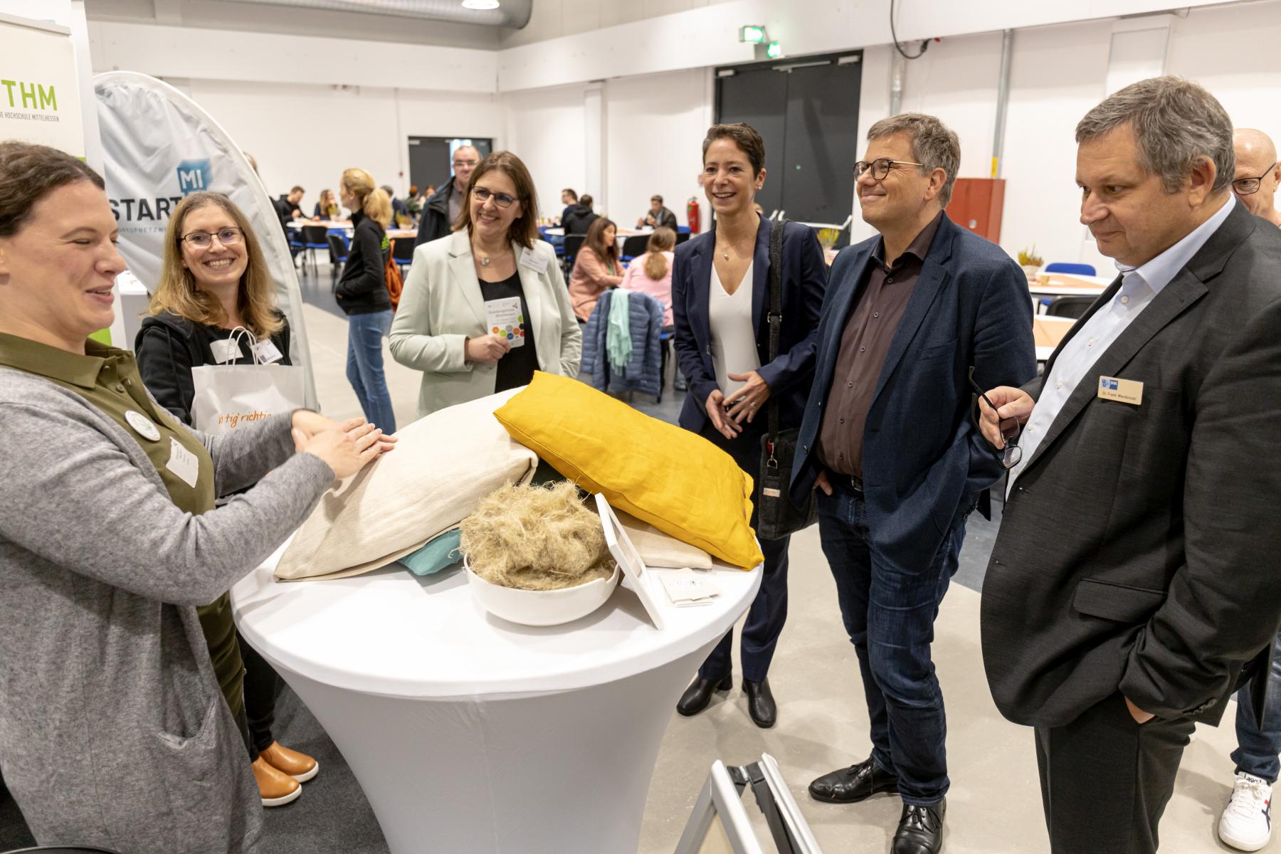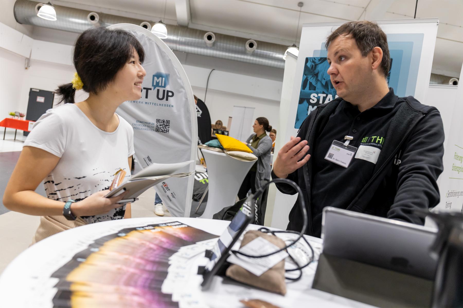 Seit der Neuausrichtung und Umbenennung in Gründungsmesse Mittelhessen ist das beliebte Event weiter gewachsen: Die Standflächen in den Hallen 4 und 5 waren komplett ausgebucht. Neben vielen Gießener Institutionen und überregionalen Einrichtungen waren auch viele Akteure aus der Stadt Marburg, dem Landkreis Marburg-Biedenkopf, dem Lahn-Dill-Kreis und dem Vogelsbergkreis präsent. An rund 50 Ständen zeigten etwa 70 Aussteller ihre Produkte, Dienstleistungen und Beratungsangebote. Das 2021 ins Leben gerufene Konzept der Gründungspatenschaften wurde vor allem an den großen Gemeinschaftsständen der Stadt Marburg und des Landkreises Marburg-Biedenkopf sowie der Technischen Hochschule Mittelhessen und des Hochschulverbund-Projektes StartMiUp deutlich.